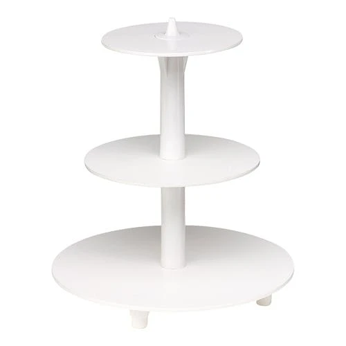 Etagen-Tortenständer ++ Material: Kunststoff ++ Farbe: weiß ++ geeignet für Hochzeiten, Büffets in der Gastronomie oder für Warenpräsentationen ++ Etagen: 3 ++ Scheiben-Ø(mm): 200/250/340 ++