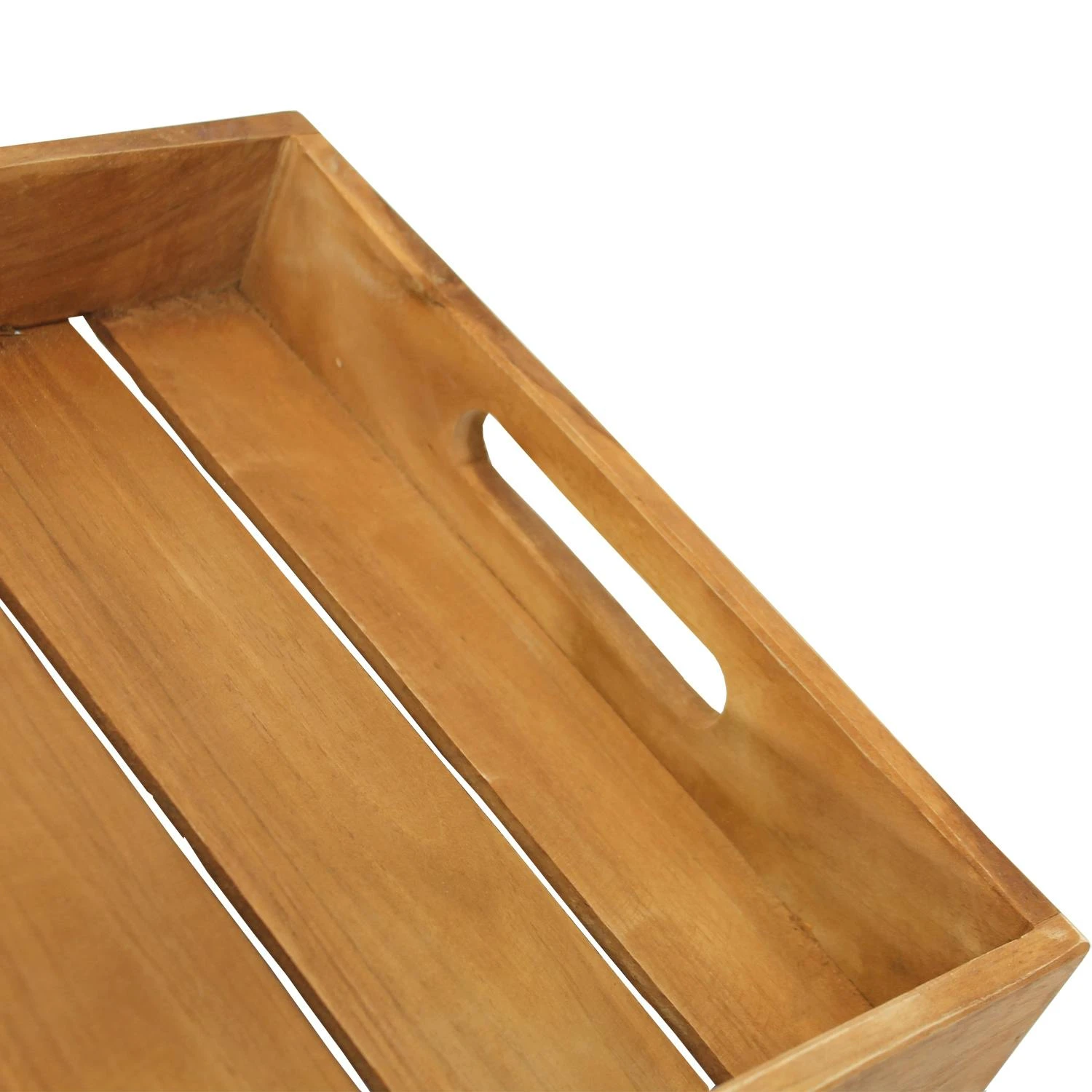 Mit diesem 3 teiligen Serviertablett Set, bestehend aus einen großen Tablett (39x29x5cm) und zwei kleinen Tabletts (26x18x4,5cm), haben Sie eine praktische Küchen- und Transporthilfe zur Hand. Verwenden Sie sie zum Servieren von Getränken, Frühstück im Bett, Kaffee in Hotels, Bars oder Cafés. Aus natürlichem Teakholz gefertigt, werden diese Serviertabletts Ihnen helfen, die Aufgaben zu erledigen. Die beiden Tragegriffe erleichtern Ihnen den Transport.