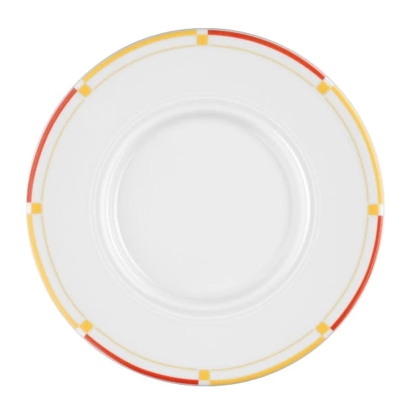 6 x Seltmann Untertasse 1 15,5 cm, Form: Vitalis, Dekor: 34290 dunkelgelb-rot