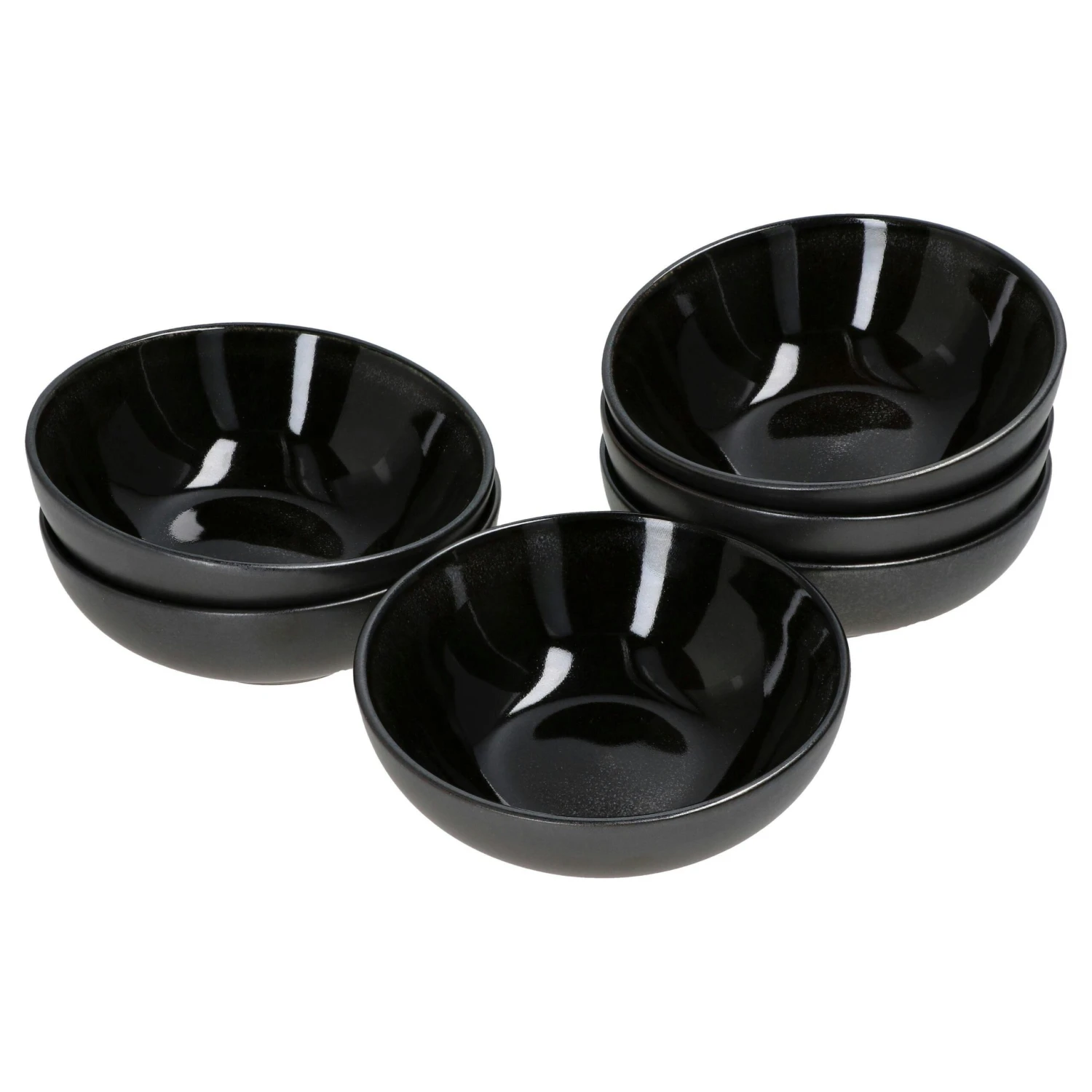 - 6-tlg. Pudding-Schalen Set Reactive Glaze Grey Black 200 ml handgefertigt