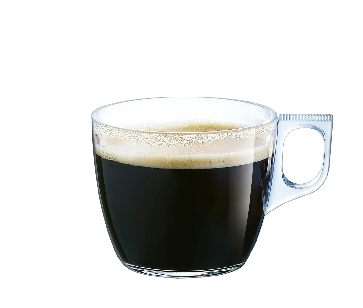 - Durchmesser: 82 mm, Durchmesser mit Henkel: 107 mm, Höhe: 71 mm, Gewicht: 207 g, Maximale Füllmenge, Volumen randvoll: 220 ml, Material: Glas, Verpackungseinheit: 6 Stück