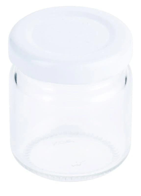 Marmeladenglas, aus glattem geblasenem Glas, mit dichtem weißem Schraubdeckel