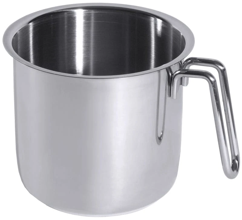 Milchtopf ohne Deckel, aus Edelstahl 18/10, hochglänzend, mit Schüttrand und Griff, Graduierung jede 0,5 l, mit Aluminium-Kompensboden, induktionsgeeignet