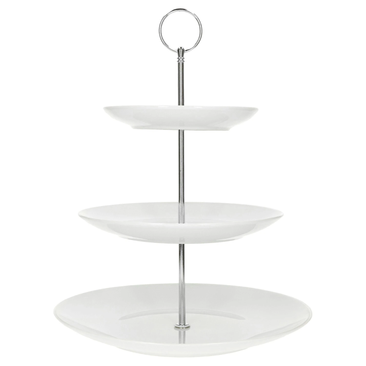 Diese schlichte 3-stufige Étagère ist eine praktische Möglichkeit Ihre Pralinen, Muffins, Kekse oder auch frisches Obst bei Tisch anzubieten.