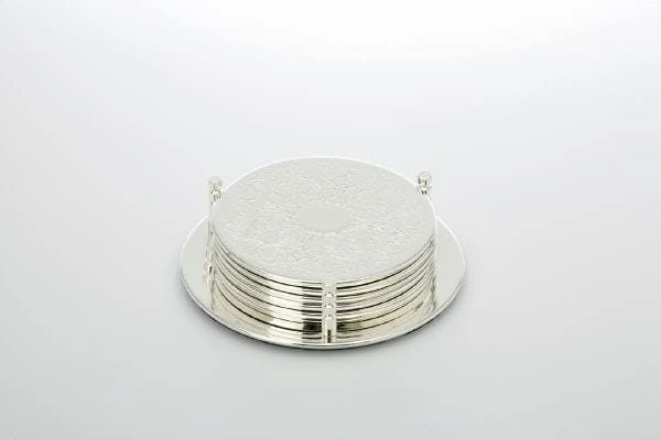 Großes, rundes Galerie-Tablett aus versilbertem Messing. Das Tablett hat eine Höhe von 5,0 cm und einen Durchmesser von 26,5 cm.