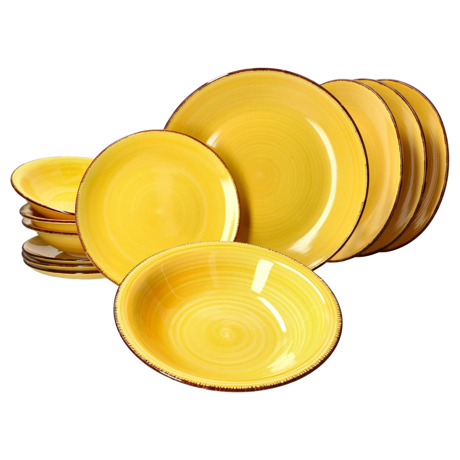 - 12-tlg. Teller Set Uni Grün 4x Speiseteller, 4x Suppenteller & 4x Kuchenteller