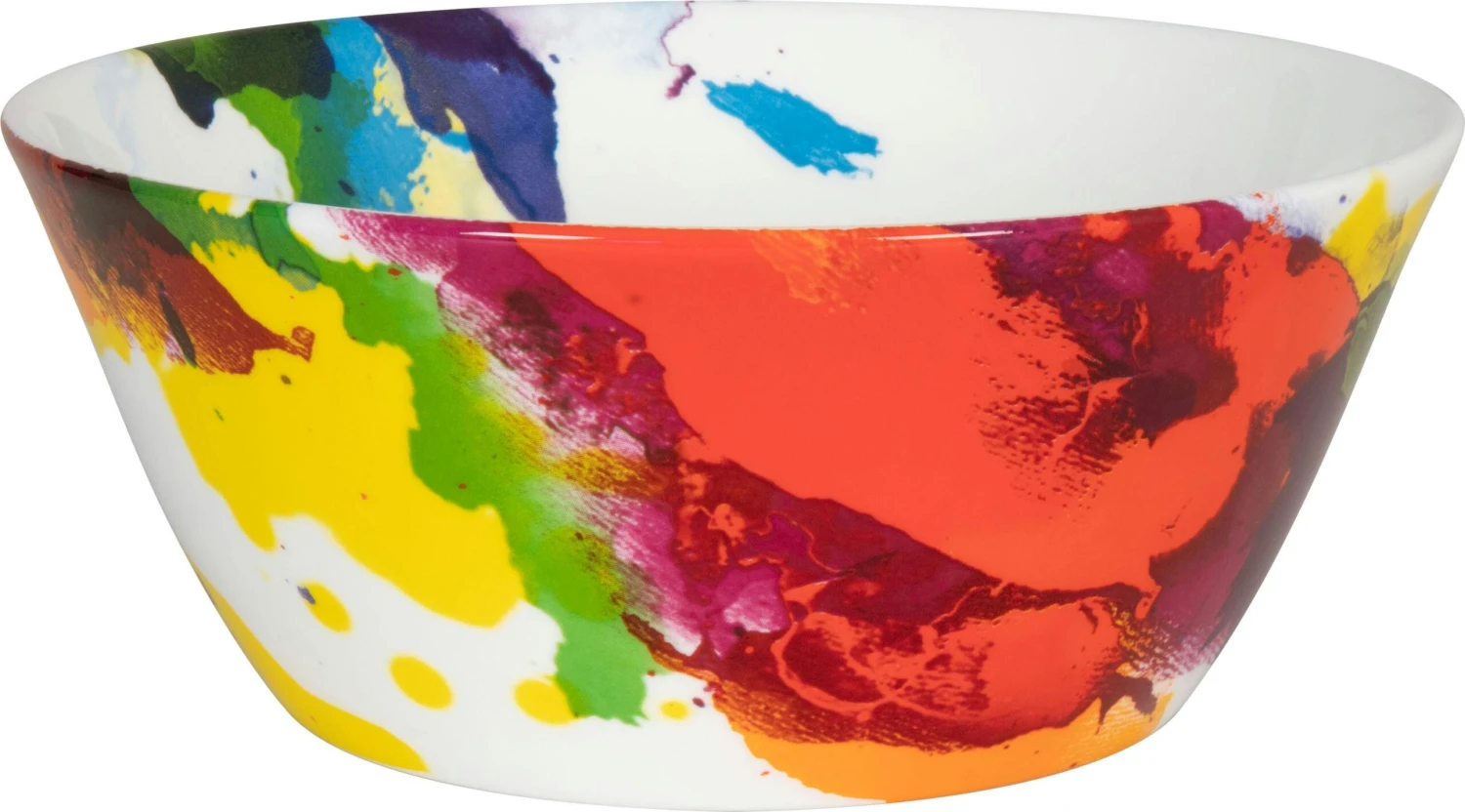 Van Well CORONA Müslischale, kleine Schale, 142 x 142 mm, 300 ml, H 43 mm, edles Porzellan, abstraktes Dekor, dreifarbig
