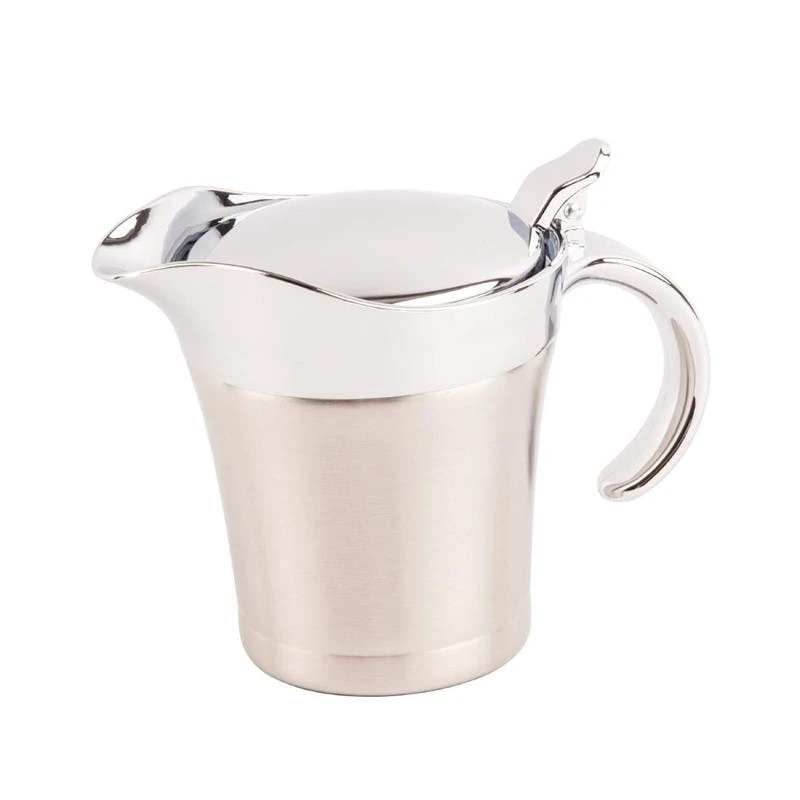 Doppelwandig isolierte Sauciere mit leicht zu bedienendem Deckel für einfachen Selbstbedienungsservice. Mit tropffreiem Ausgießer.