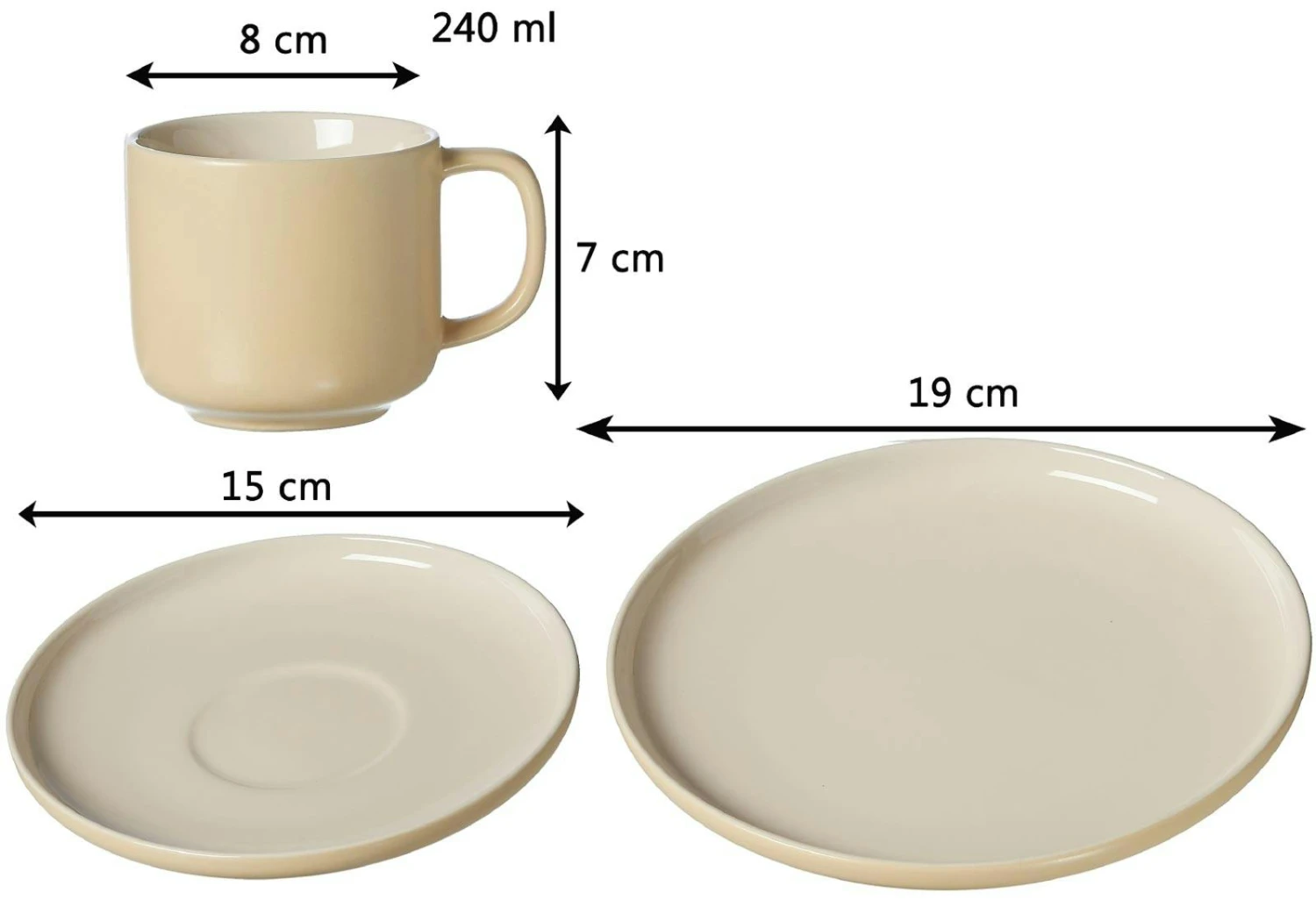 Lieferungsumfang: 4x Tasse, 4x Untertasse, 4x Teller