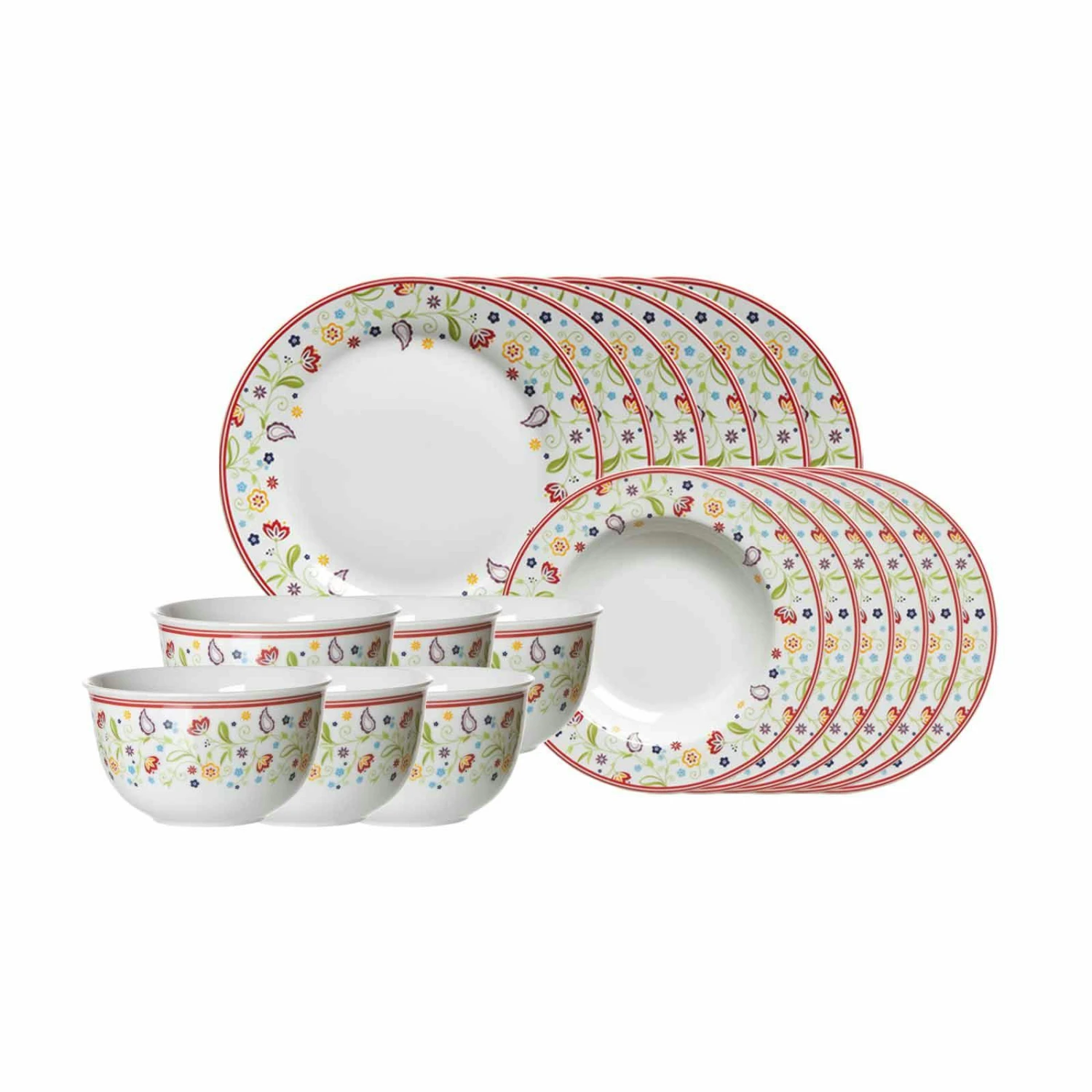 Dieses Service von Ritzenhoff & Breker zeigt die perfekte Symbiose aus den beiden Glasserien Doppio & Shanti. Die Kombination aus dem roten Dekor der Serie Doppio und die bunte Musterung der Serie Shanti sind ein wahrer Blickfang auf jeden Esszimmertisch.