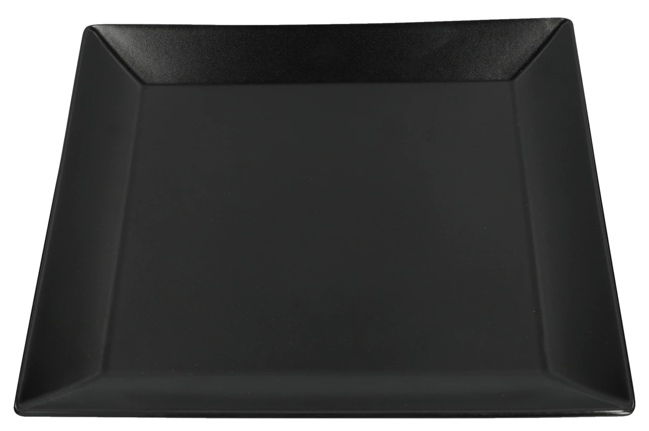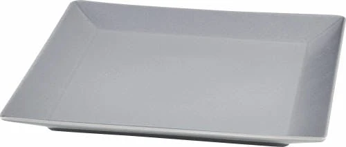 Hochwertige quadratische und graue Servierplatte aus Steingut. Das Produkt hat die Maße von 26 x 26 cm.