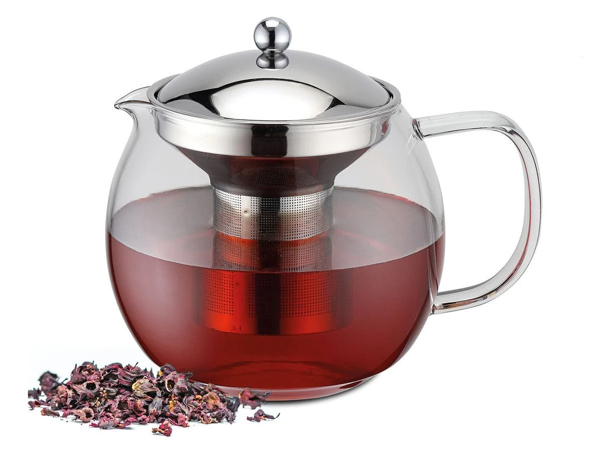 Die Teekanne besteht aus hitzebeständigem Borosilikatglas und enthält einen herausnehmbaren, feinen Edelstahl-Teefilter, der zum Aufbrühen aller Arten von Tee geeignet ist.