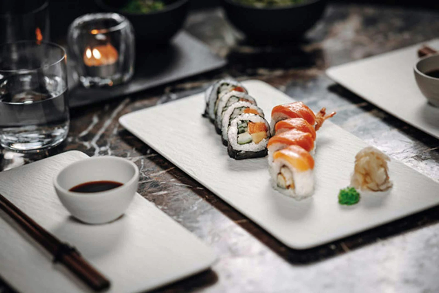 Villeroy & Boch Manufacture Rock Servierplatten 2er Set – weiß rechteckig in Schiefer-Optik